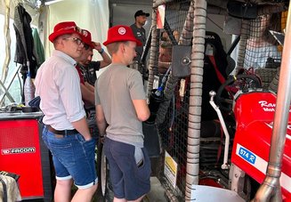 Das gibts nur im Waldviertel. Ein einmaliges Erlebnis war der Betriebsausflug zum 24-Stunden-Traktorrennen in Reingers. In der Boxengasse besuchten wir das Transporte Reiss Racing Team, gesponsort auch von Fischer. Frisch gestärkt wurde das Team beim Start und in den ersten Stunden des Rennens angefeuert. Geholfen hat es sicher. Wir gratulieren zum Weltmeister 2023!