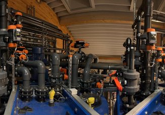In der Anlage wurden 165 pneumatisch angetriebene Klappen, 45 pneumatische Kugelhähne und 5 pneumatische Schieber verbaut. Dafür sind 2,5 km Druckluftschläuche verlegt worden. Die Befüllung und Entleerung der Behälter erfolgt über ein Rohrleitungslabyrinth von über 1,5 km Länge. Dazu kommen noch 900 m Leitungen im Doppelrohrsystem für die Chemikaliendosierung.